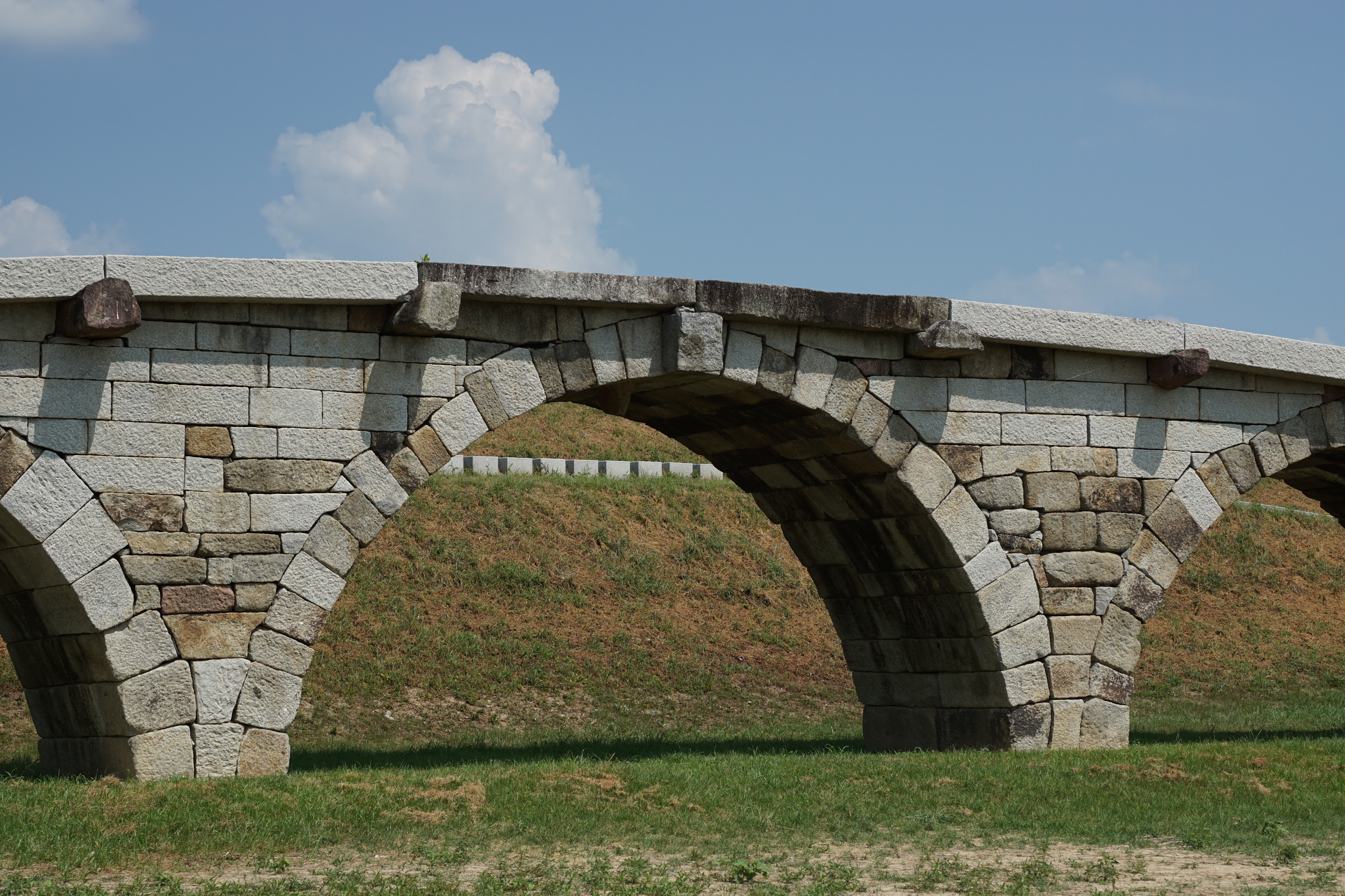 논산에 있는 곳으로 사진과 같이 짧은(?) 다리의 문화재로 한복판에 덜렁 다리만 있어서 뭔가 싶지만 고요한 느낌이 있는 곳이다. 외딴 한복판에 있다보니 엄청 덥고 더워서 그런가 사람이 없었다. 한번씩 낚시하러 온 사람이나 자전거 온 사람이 와서 찍고 간 정도.