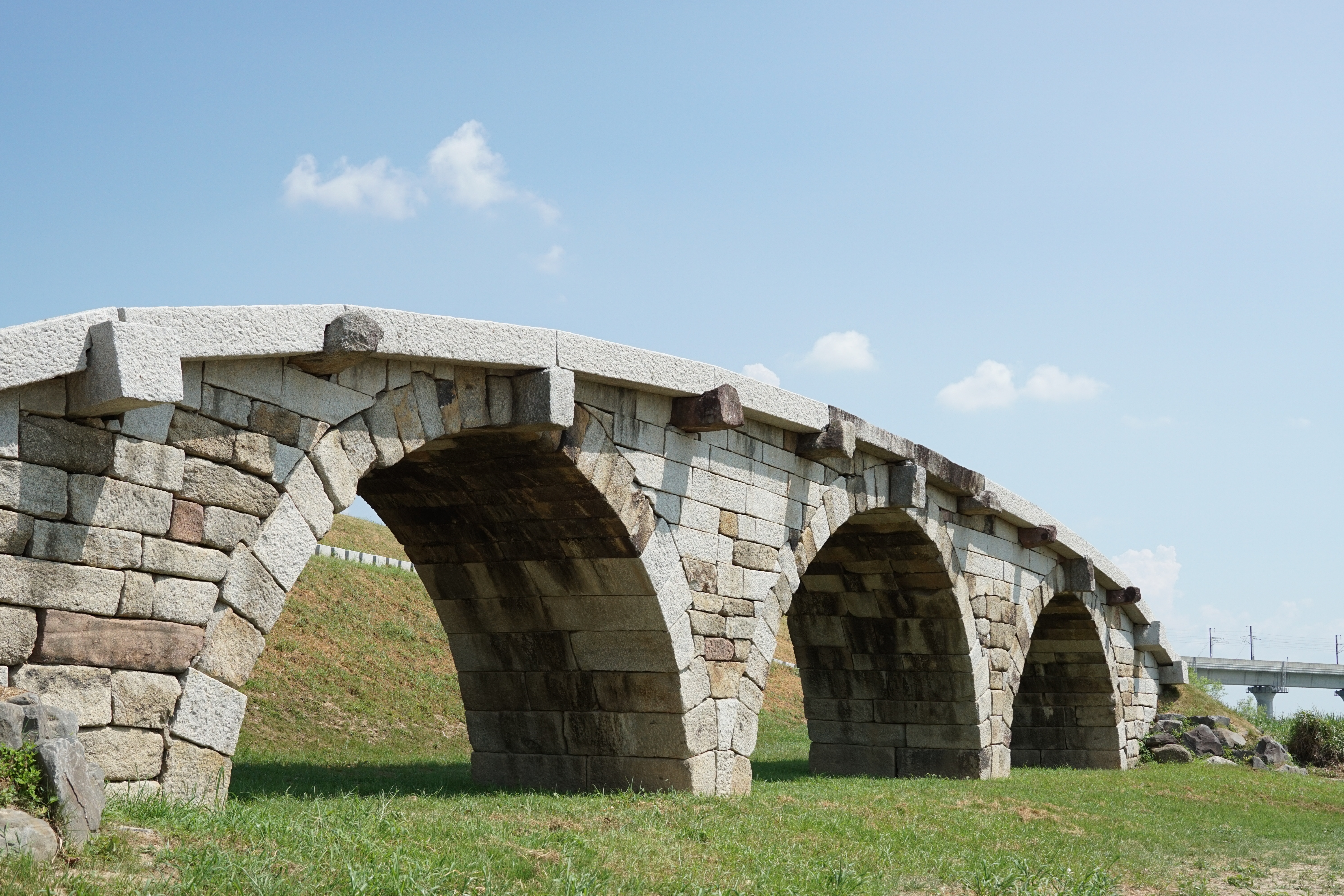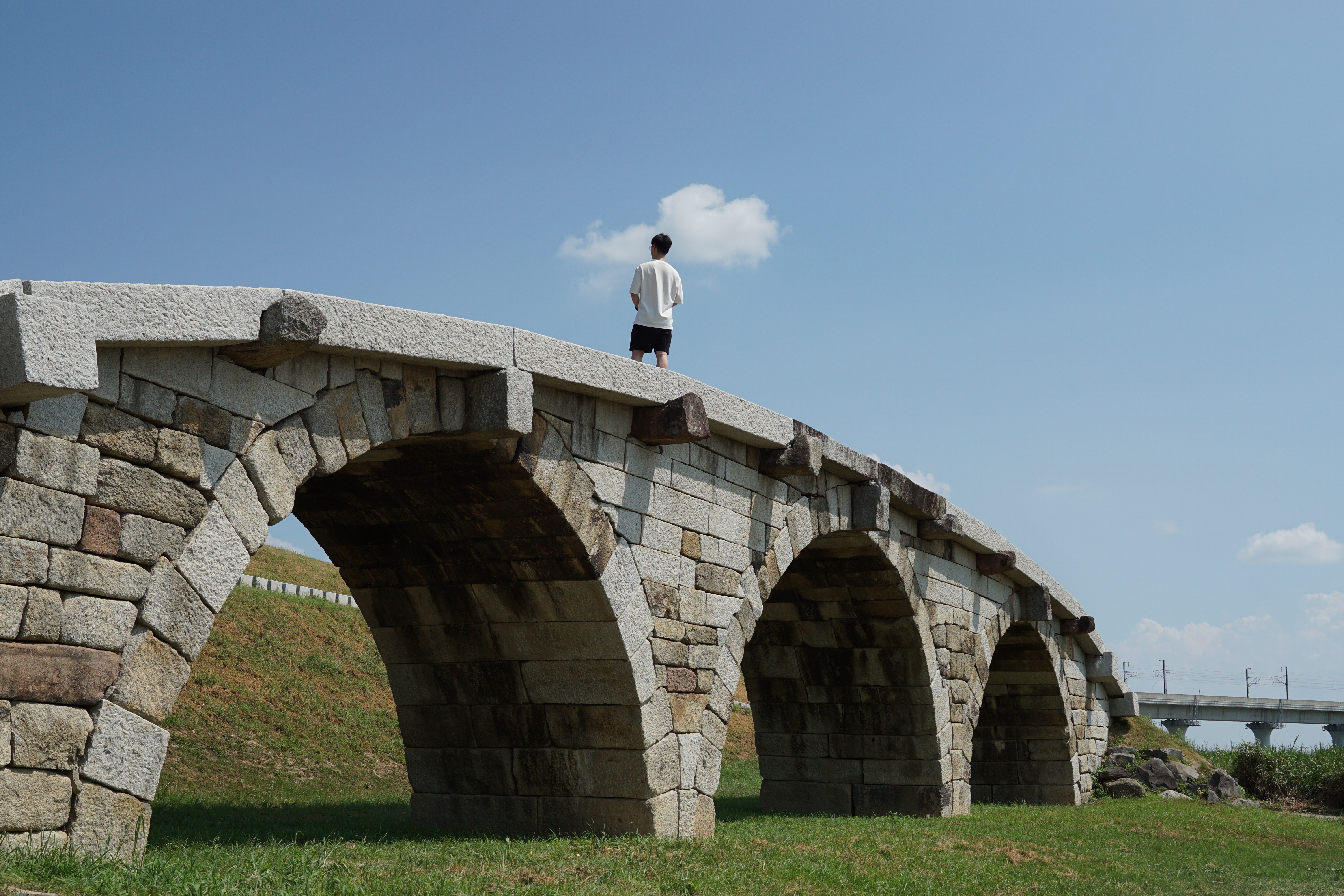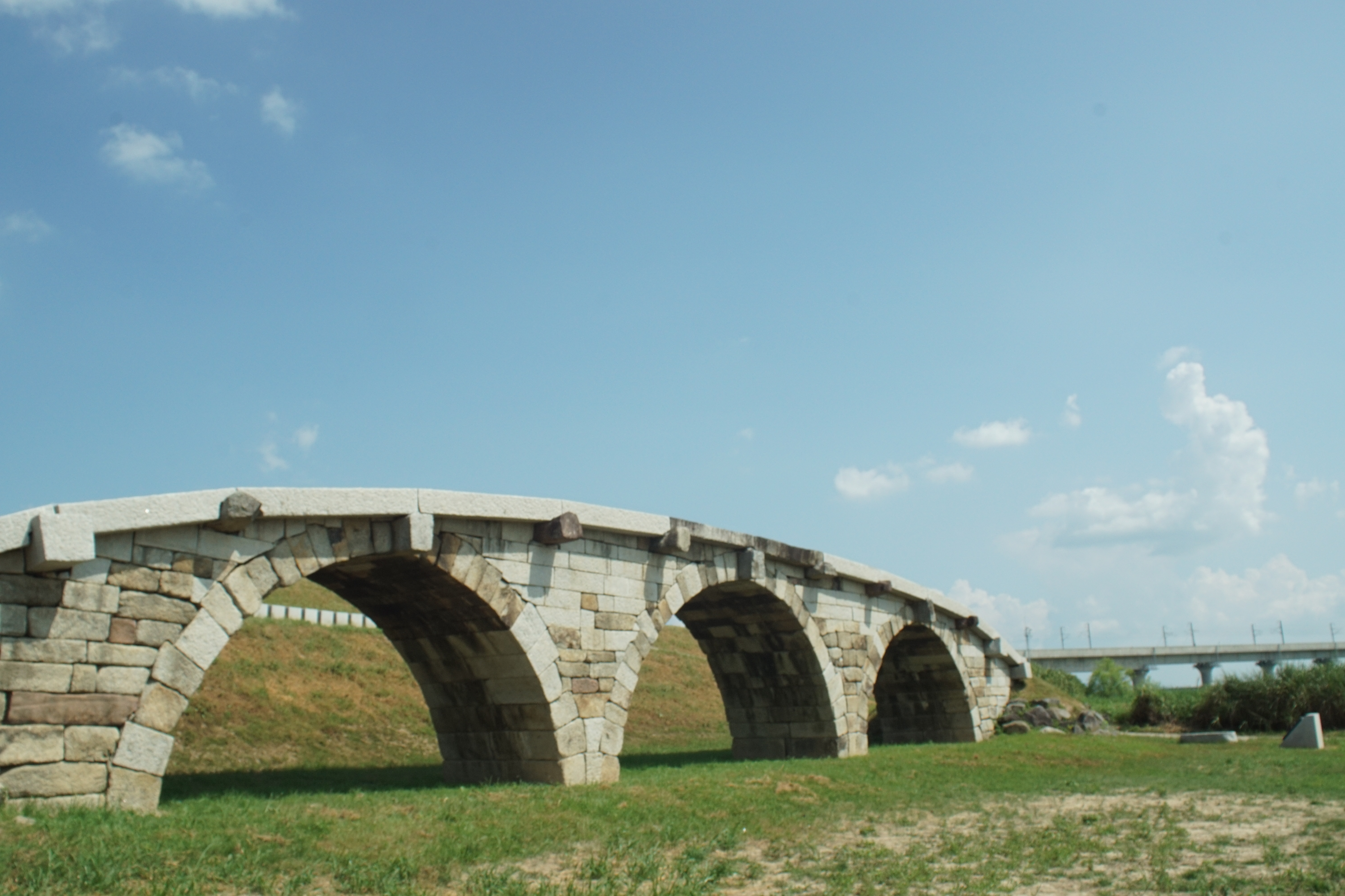 논산에 있는 곳으로 사진과 같이 짧은(?) 다리의 문화재로 한복판에 덜렁 다리만 있어서 뭔가 싶지만 고요한 느낌이 있는 곳이다. 외딴 한복판에 있다보니 엄청 덥고 더워서 그런가 사람이 없었다. 한번씩 낚시하러 온 사람이나 자전거 온 사람이 와서 찍고 간 정도.